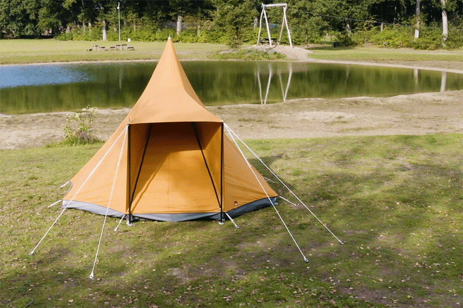 The Apollo 3 is one of those tents where it will be love at first sight for your guests. For a small teepee tent, the tent has an atmospheric appearance and provides a cosy feeling inside. For rental purposes, the Apollo 3 is mainly used as an extra tent for children, a hiker's tent, for couples, or at festivals, for example. The canopy gives the tent a little extra touch. However you cannot sit under the canopy, so it is mainly meant to prevent rain from entering the tent. The tent can be set up in ten minutes and thanks to the short guy lines, does not require much space. Interested in this particular tent, but require a bit more space? Perhaps the bigger Giant Fir is an option!