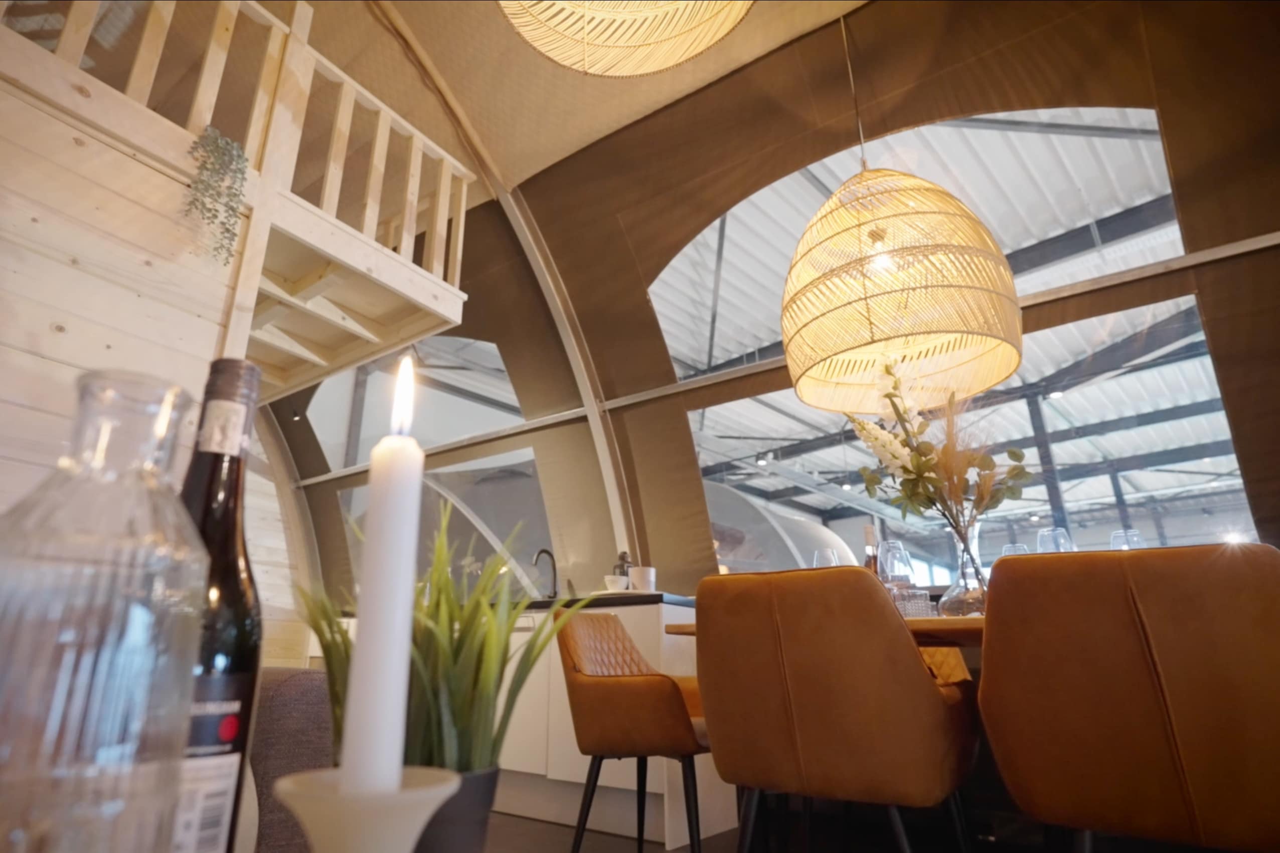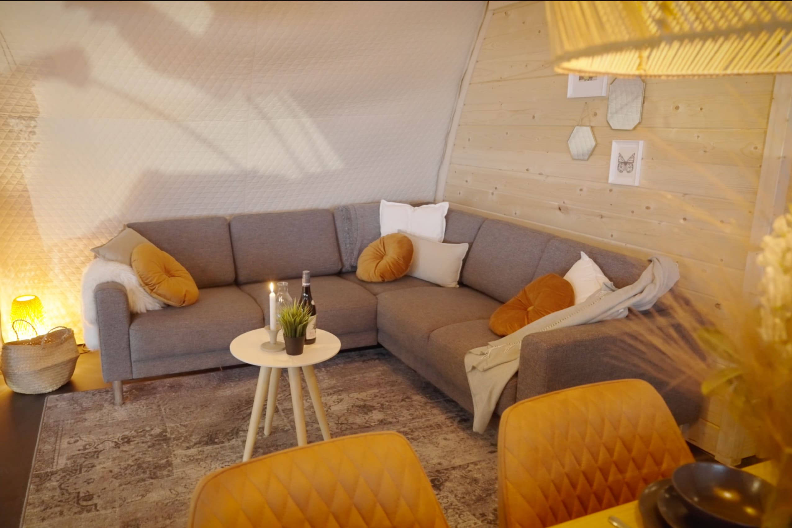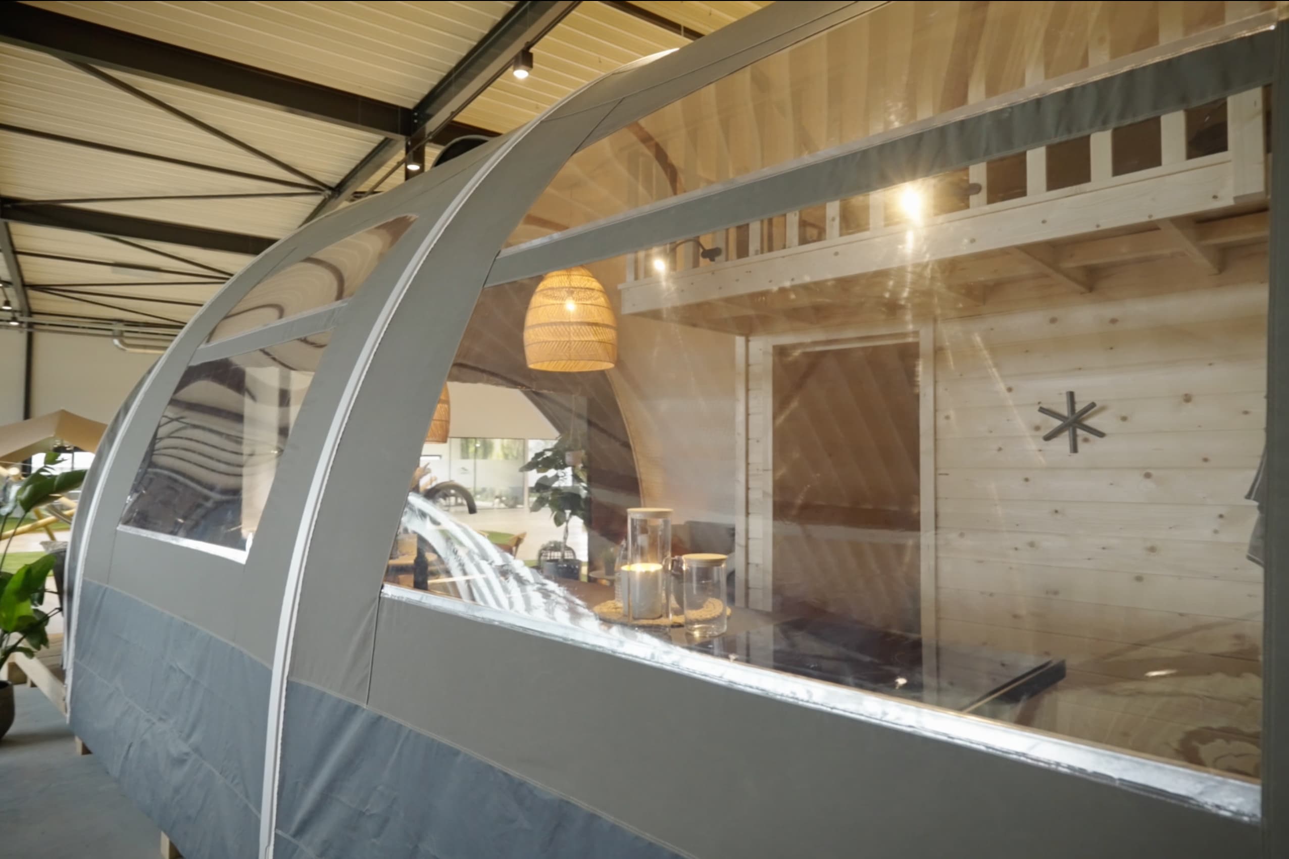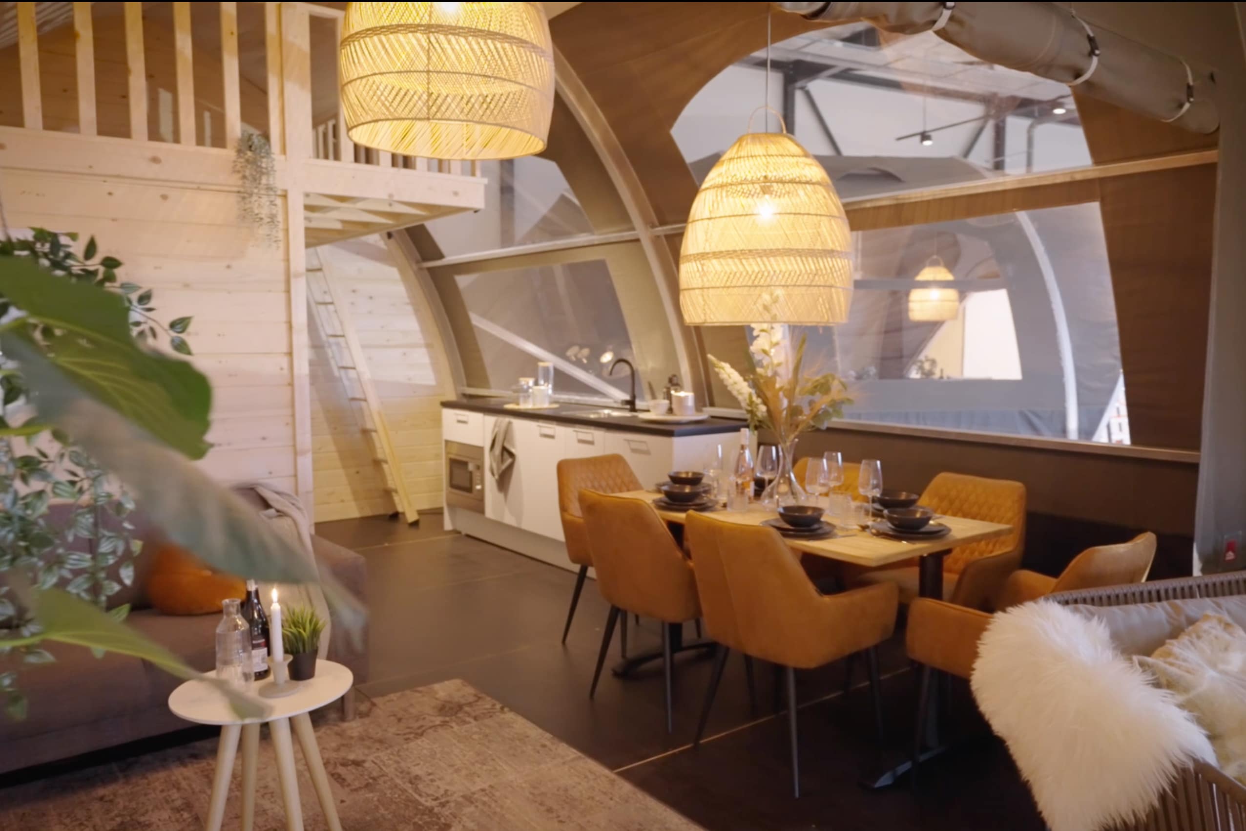 The Oak is one of our largest luxury tents and truly gives campers a sense of freedom and holiday in the middle of nature. This is especially due to the tent’s unique use of space: the wide entrance, large windows and 3.8-metre high ridge give guests that true camping feeling, but with the desired convenience and comfort, such as a high-quality bed, toilet, shower and kitchen.